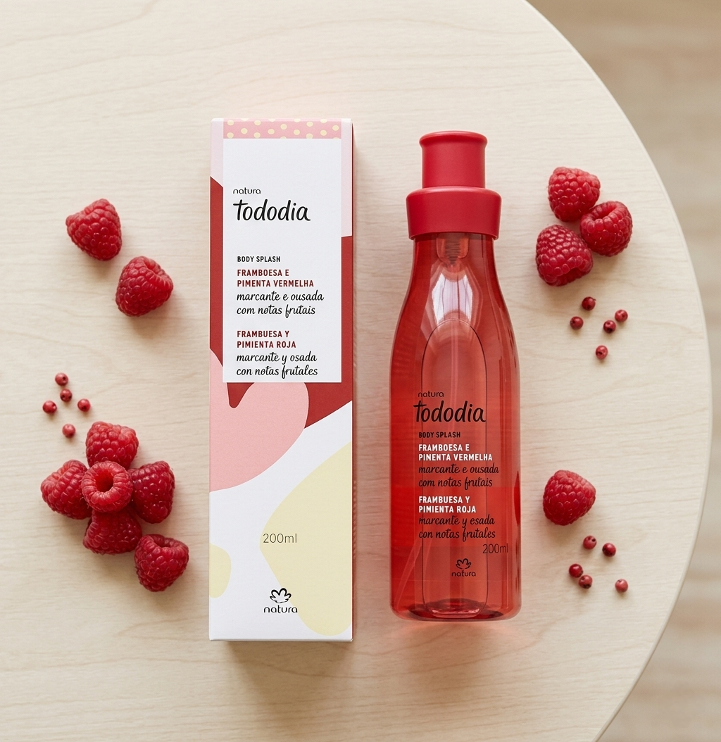 Una fragancia frutal dulce con un toque especiado que combina la jugosidad de las frutas con un fondo cálido y femenino. El Body Splash Frambuesa y Pimienta Roja envuelve la piel con un aroma vibrante, dulce y ligeramente intenso que resulta moderno, seductor y muy atractivo. Su perfume es alegre y envolvente, ideal para quienes aman las fragancias frutales con personalidad y un toque diferente.