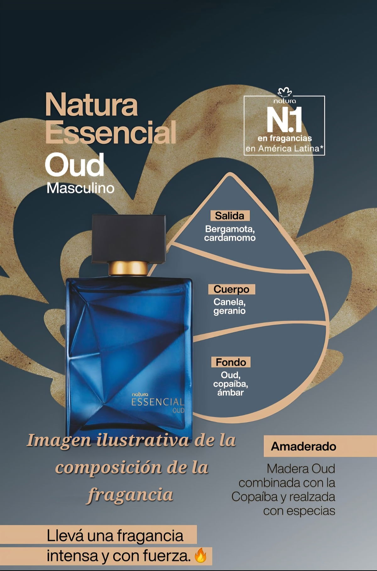 🌿 Notas presentes: bergamota, cardamomo, canela, geranio, oud, copaíba, ámbar