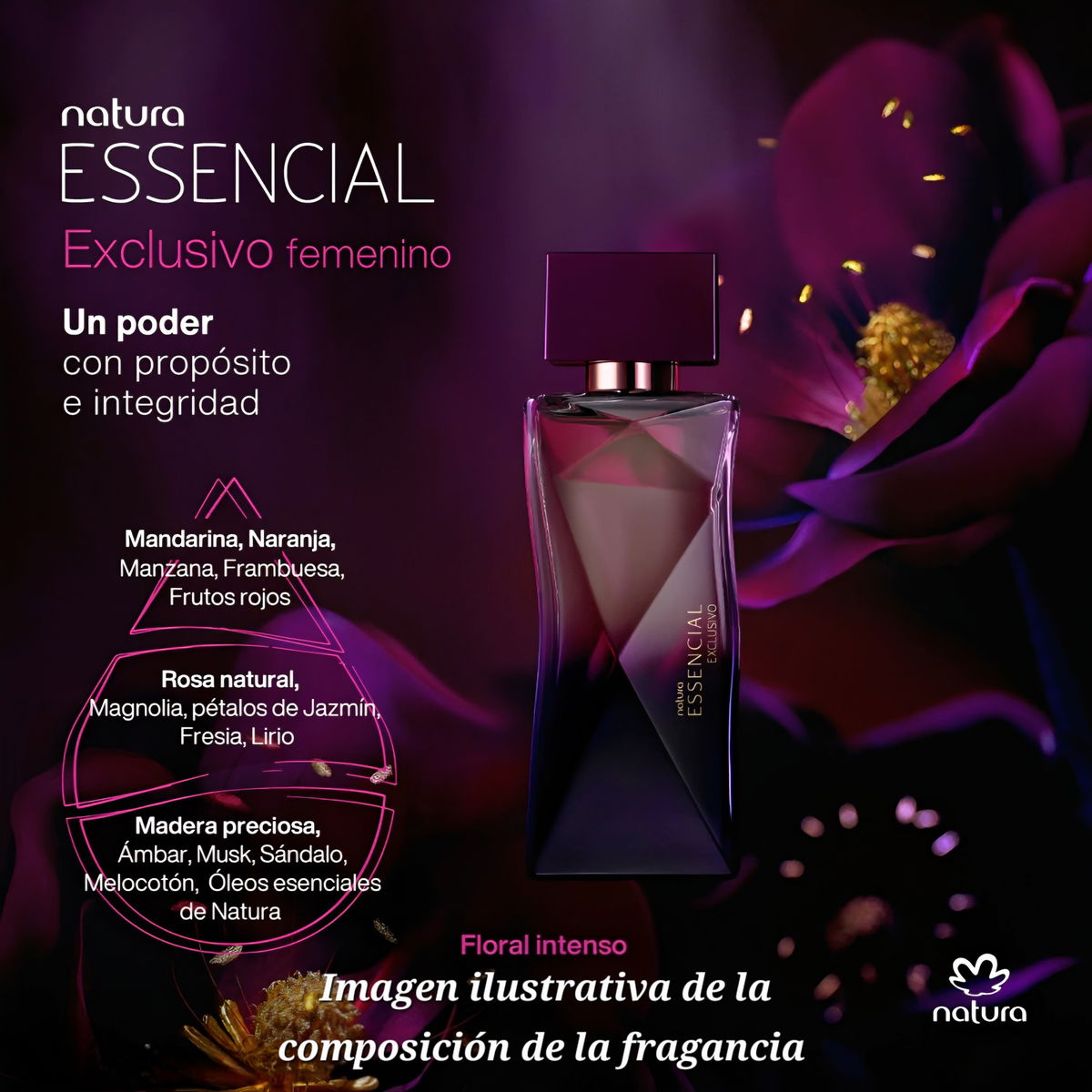 Un floral elegante y femenino, con un toque frutal que lo hace fresco y versátil. Essencial Exclusivo Femenino en su versión spray corporal es ideal para el día a día: suave, moderno y perfecto para llevar con vos.