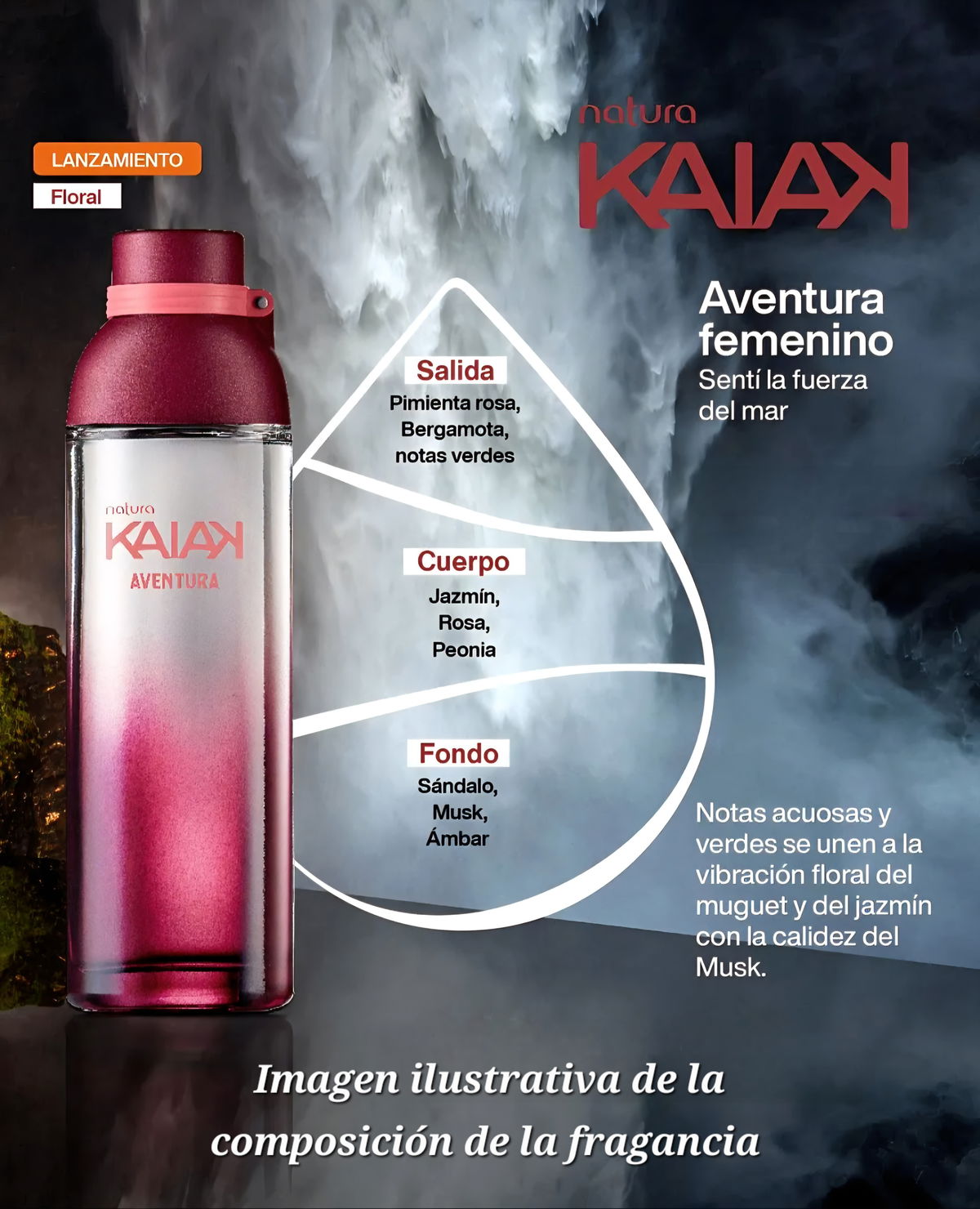 Querés un spray corporal fresco y floral con un toque vibrante? Kaiak Aventura es ideal para acompañarte en el día a día con su energía natural y femenina.