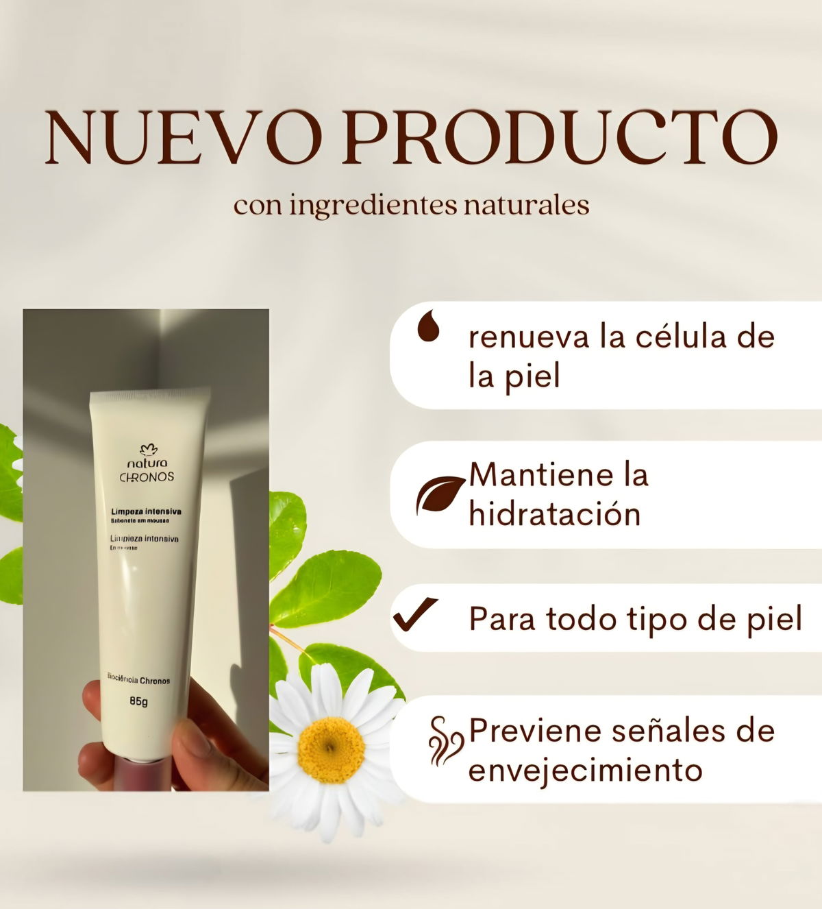 📌 Tip: usala como primer paso de tu rutina anti-edad ✨ Podés complementarla con otros productos de las líneas Chronos o Faces, según tu tipo de piel y necesidad 💥
