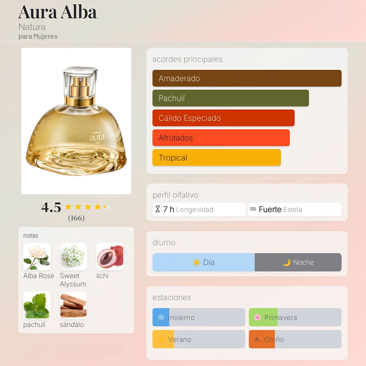 Una fragancia floral luminosa y sofisticada. Aura Alba es una creación de alta perfumería que celebra la delicadeza de la rosa blanca con un toque moderno y envolvente. Ideal para quienes buscan un perfume femenino, elegante y con una estela suave pero memorable ✨