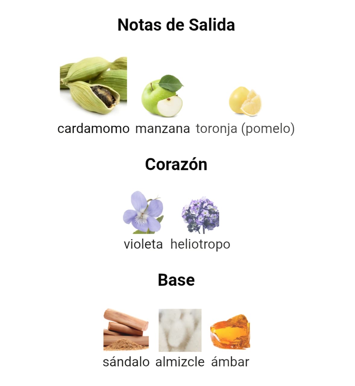 🌸 Notas de corazón: Violeta, heliotropo