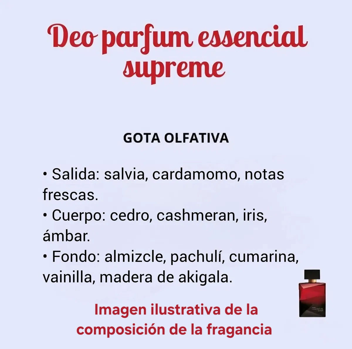📌 Tip: usalo solo para una fragancia ligera y moderna, o combiná con el perfume Essencial Supreme para una perfumación más intensa y duradera 💪