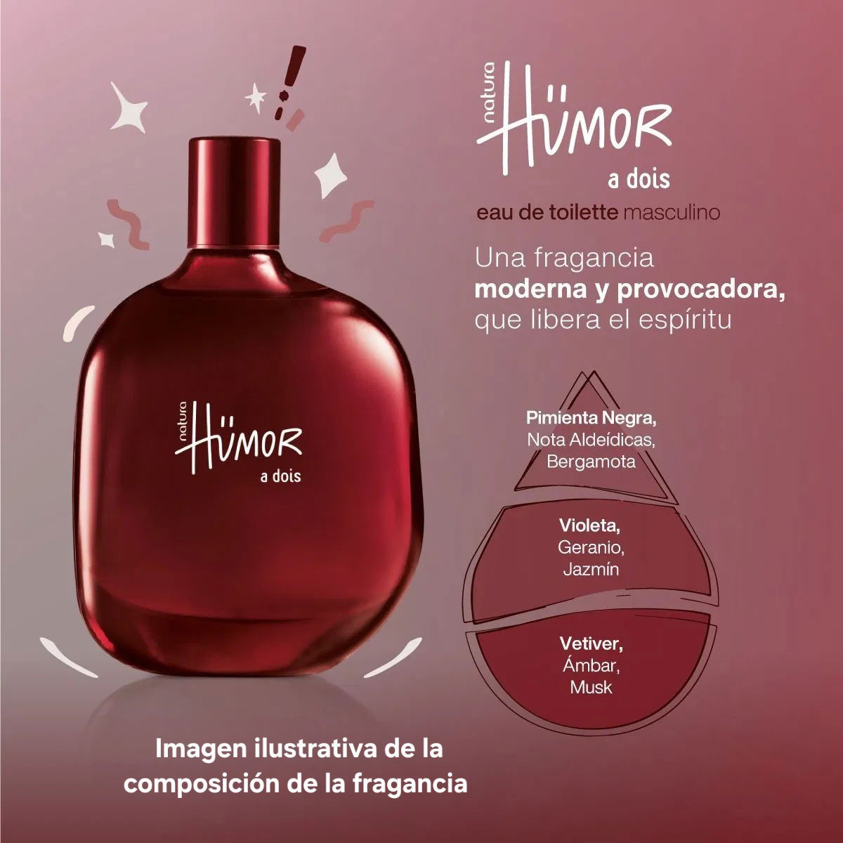 Si buscás un aroma fresco, elegante y con un toque seductor para usar todos los días, el spray corporal Humor a Dois es una excelente opción. Su fragancia combina notas especiadas, florales y amaderadas que logran un equilibrio moderno y masculino. Es liviano, versátil y perfecto para acompañarte tanto en el día a día como en momentos más especiales.